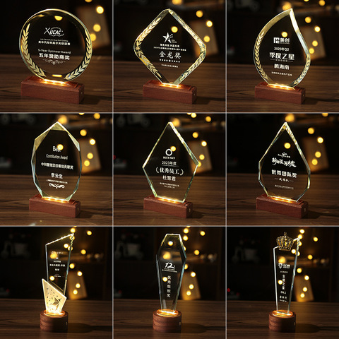 क्रिस्टल आधुनिक ट्रॉफी पदक प्रीमियम नक्काशीदार लोगो रचनात्मक कांच के 9 पुरस्कार ट्रॉफी उपहार